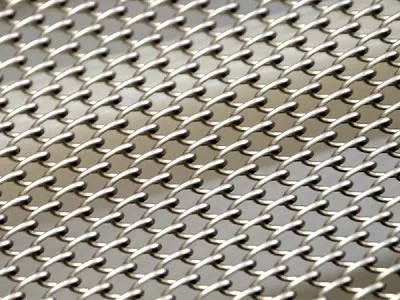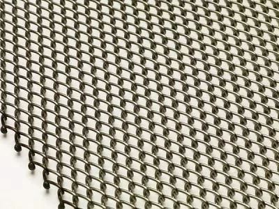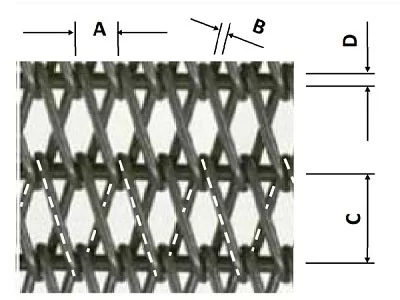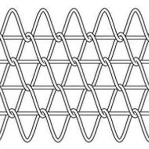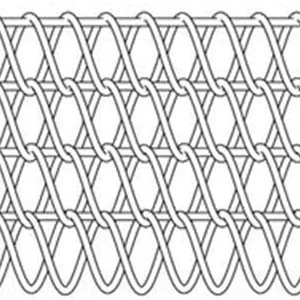 Different from balanced weave belt consisting of alternating left-hand and right-hand spiral coils chain link conveyor belting is constructed by unidirectional coils. For a friction driven belt, the belt features alternating sections of left-hand then right-hand. To counteract the tracking issues caused by the unidirectional coil pattern, cross rods are inserted across the belts – one is right-hand woven and the other is right-hand woven.