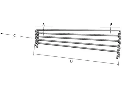 A: Pitch (mm) B: Rod diameter (mm) C: Inside Radius (mm) D: Overall Width (mm)