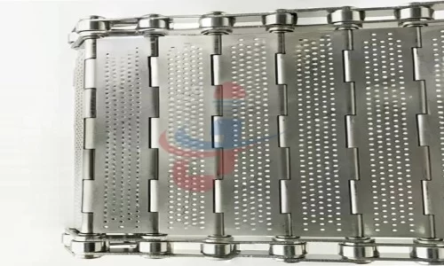 Plate conveyor belts are composed of hinged slats with or without holes. Hinge plate belts have side and cross plates with various height and thickness combinations to meet the needs of different customers. The chains at both ends can be fixed with cotter pins or washers for easy removal and maintenance.