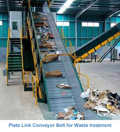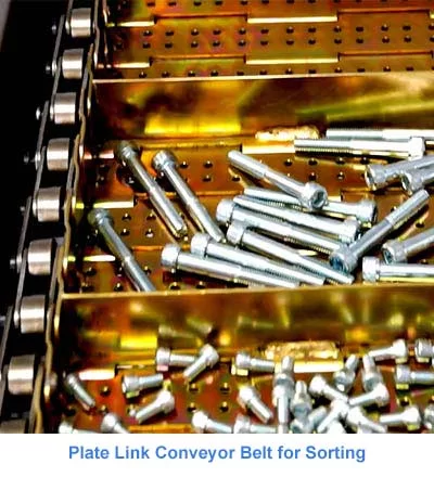 The link plate belts are tailor made and can be executed with pitches in almost any width and length and plate thickness .The link plate belt is positively driven by sprockets, and can be used at conveyor speeds of less than about 120 meters per minute.