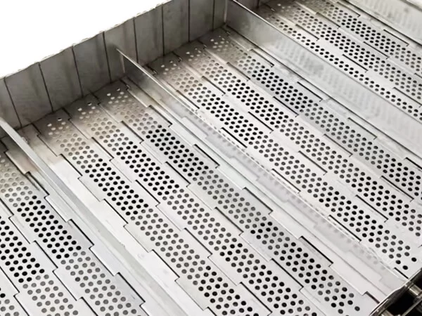 • Curved perforated plate conveyor belt is available to suit more applications and equipment.