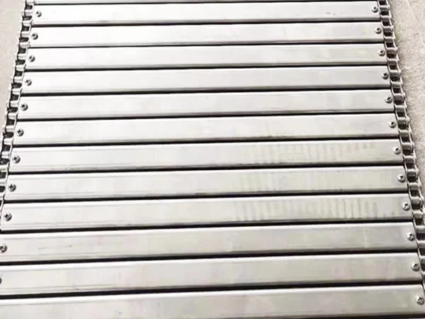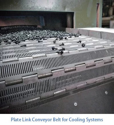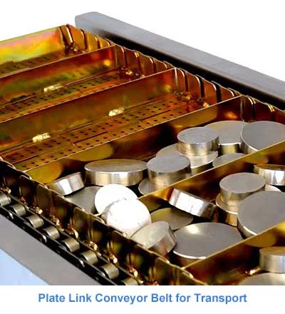 The plate link conveyor belt can be made of steel, stainless steel AISI 304, AISI 316 or others, have superior corrosive resistance to suit most applications at elevated temperature.