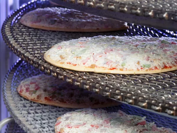 Self-Stacking Spiral Freezer Belts | Structure & Features: - Does not require any support trays—the belt stacks on itself. - Specially engineered edges interlock for vertical stacking. - Designed for fully automated spiral systems. Advantages: - Space-saving and compact spiral system design. - No support rails mean easier cleaning and better hygiene. - Higher thermal efficiency and reduced maintenance. Applications: - Large-scale frozen food processing (e.g., pizza, fried chicken, bread, ready meals). |
